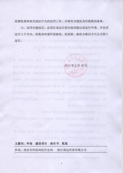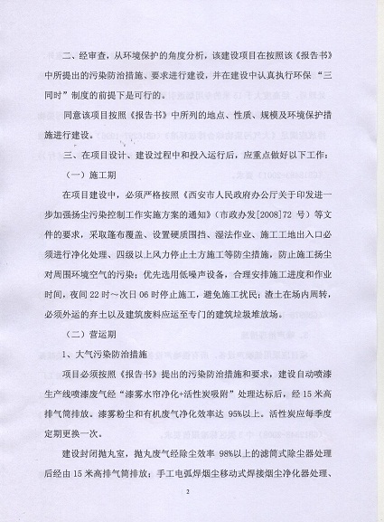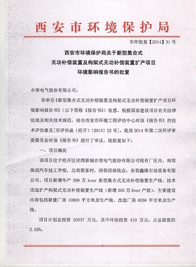 我公司已于2014年1月16日取得《西安市環(huán)境保護(hù)局關(guān)于新型集合式無功補(bǔ)償裝置及構(gòu)架式無功補(bǔ)償裝置擴(kuò)產(chǎn)項(xiàng)目環(huán)境影響報(bào)告書的批復(fù)》(市環(huán)批復(fù)【2014】31號(hào))。