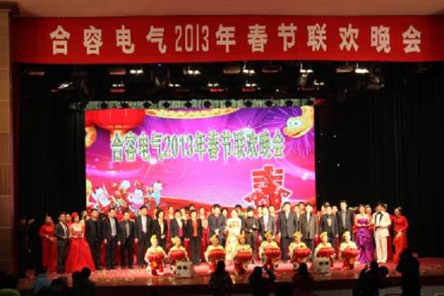 龍含寶珠辭舊歲,蛇吐瑞氣迎新春。2月4日晚,合容電氣2013年春節聯歡晚會隆重舉行,公司全體干部職工及家屬約600人齊聚一堂,共同慶祝新一年的開始。晚會現場歌聲、掌聲、歡呼聲此起彼伏,到處呈現出一幅和諧、幸福的畫面。