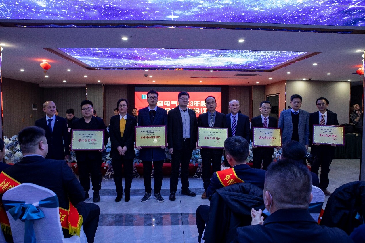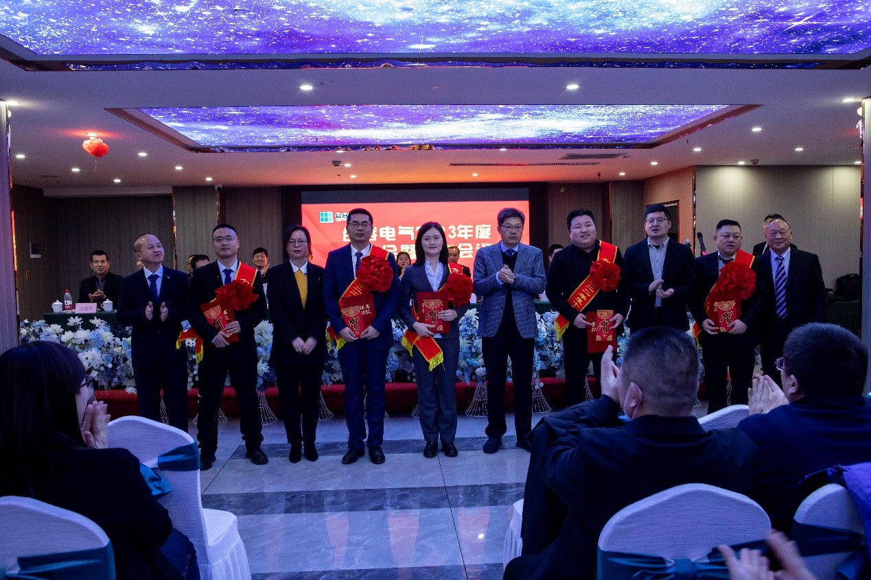 會上,首先由總部總經(jīng)理王永斌宣讀《合容電氣關(guān)于組織機構(gòu)調(diào)整及人事任免的決定》,接著由董事賈尊淵宣讀《合容電氣關(guān)于表彰2022年度先進員工、優(yōu)秀管理者、最佳講師、最佳導(dǎo)師、標兵及優(yōu)秀團隊的決定》。由各領(lǐng)導(dǎo)為獲獎?wù)哳C獎并合影留念。