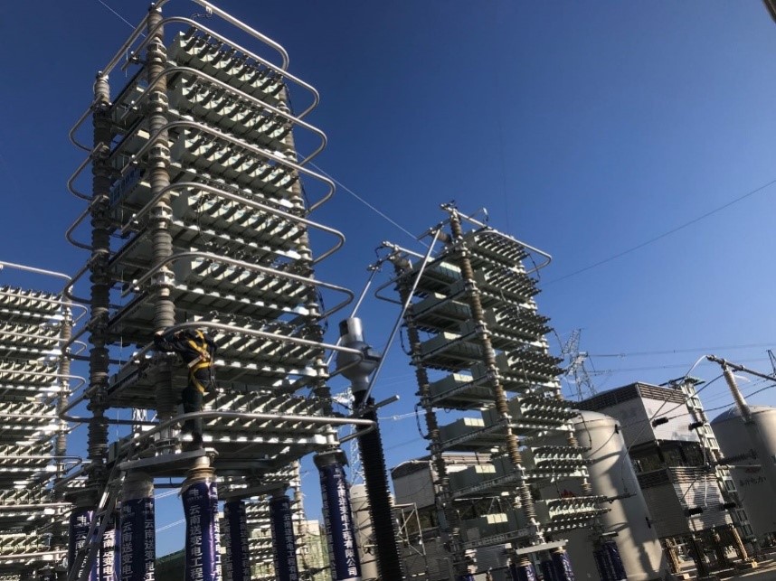 2019年,公司成功中標南方電網公司云貴互聯通道工程祿勸換流站3組濾波電容器裝置,型號為TAL500-120019.2/535.8-1QW , 9臺;TAL500/142.15-23520/245-1W , 9臺。該項目是我公司在南方電網中標的又一個超高壓直流換流站工程,該站海拔高度較高,為2550米,污穢等級D級,電容器裝置使用復合絕緣子。本項目2020年投運,至今運行良好。